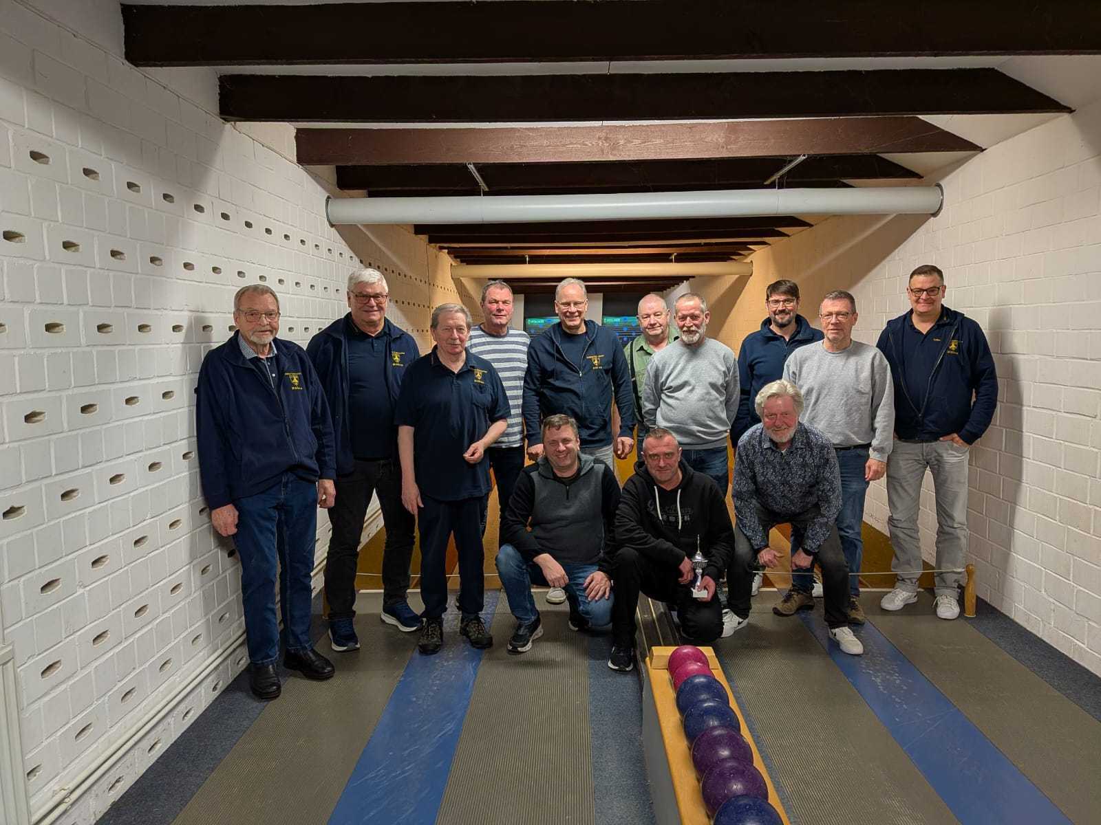 Die Teilnehmerzahl war erfreulich hoch, und schnell zeigte sich: Auch auf der Kegelbahn sind unsere Herren treffsicher unterwegs. An diesem Abend stand zwar nicht das Ergebnis im Vordergrund, sondern das Miteinander, aber trotzdem geht es doch auch immer ein bisschen darum, den Besten zu ermitteln. Als bester Kegler wurde Mario Meinecke gekürt, dicht dahinter folgte Fritz Jeremias und auf Platz 3 lagen gemeinsam Stefan Thomas und Claus Lißner. Aber am Ende waren alle Teilnehmer die Gewinner des „Pokalkegelns“.